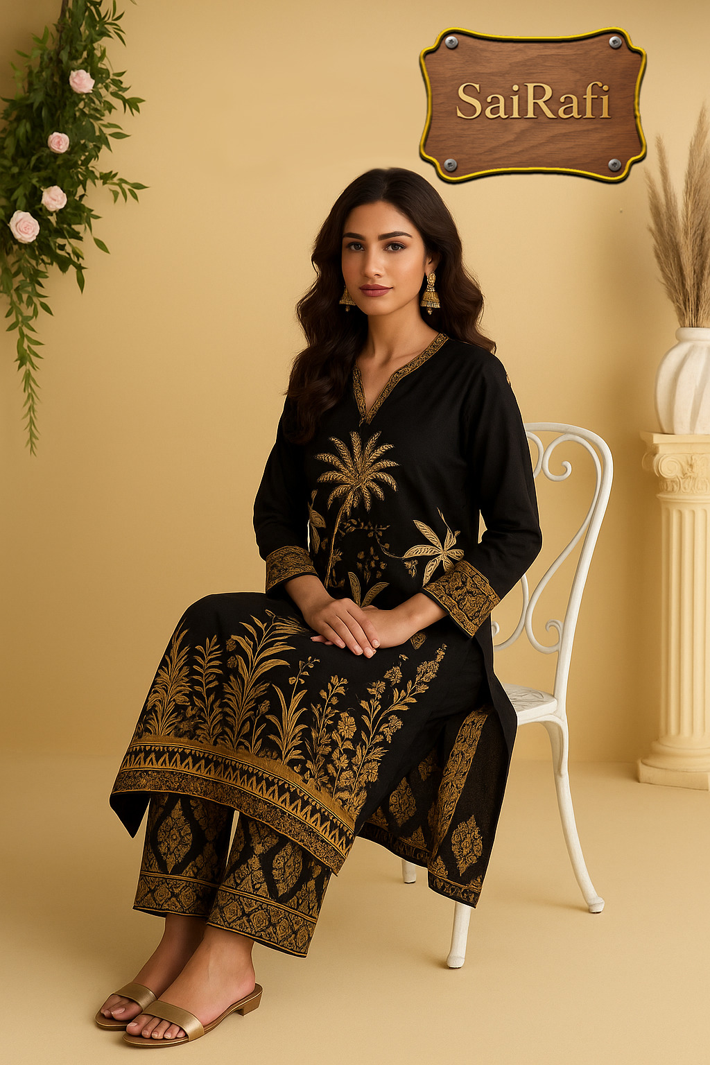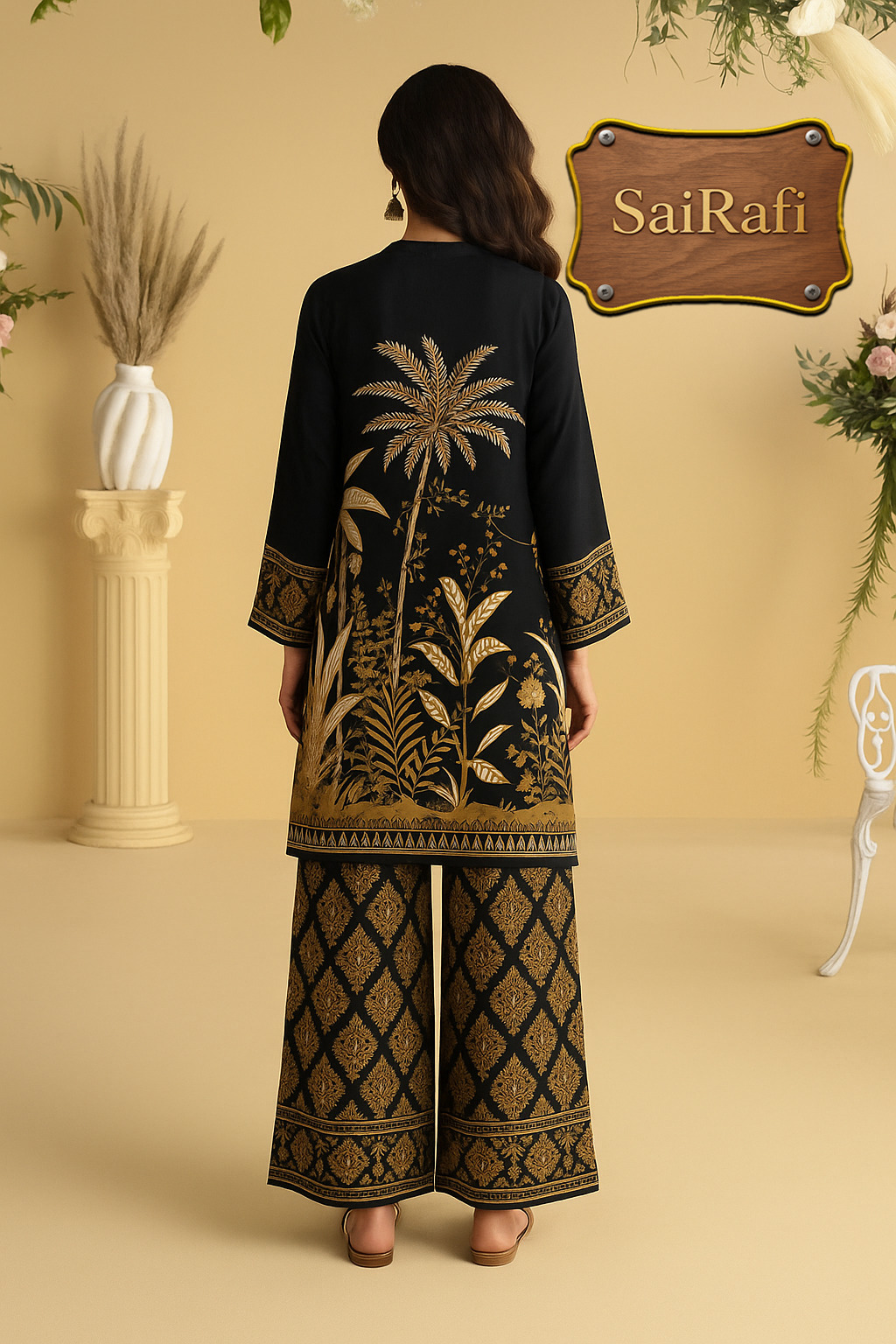 Color Story: Black and antique gold — timeless, luxurious, and versatile.